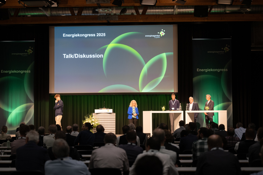 Als Informations- und Netzwerkplattform organisiert die Energieagentur St.Gallen jährlich den schweizweit bekannten Energiekongress für Gemeinden, Energieunternehmen, Politik, Wirtschaft und Wissenschaft. Dabei tauschen sich rund 600 Teilnehmende über den Umbau der Energieversorgung mit dem Ziel der klimaneutralen Schweiz 2050 aus.